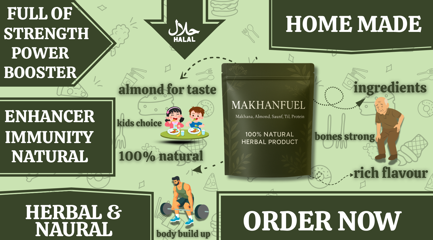 ⭐️⭐️⭐️⭐️⭐️ — Sharaz Saleem"Makhana Fuel worked like a natural gainer for me. I’ve been using it daily along with my workout, and I’ve noticed real improvement in my stamina and strength. It’s clean, sugar-free, and doesn’t feel heavy like other supplements. Highly recommended for anyone looking to gain power in a natural way."